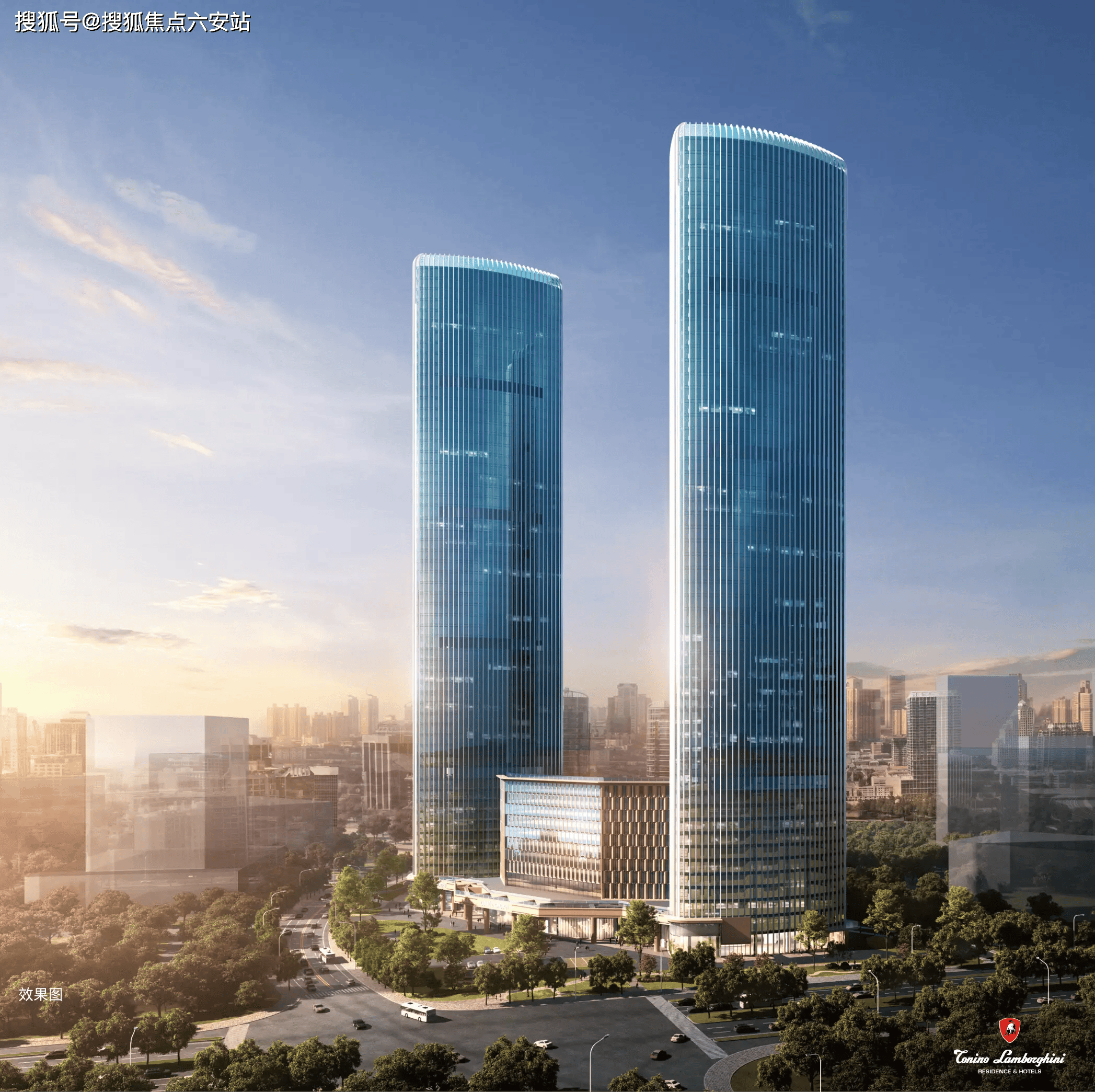 作为杭州奥体板块的标杆项目,瑰郦中心由深耕长三角高端地产27年的浙江新世界房地产集团与全球超跑奢牌兰博基尼联合打造。开发商以“国际视野+顶奢定位”为核心竞争力,曾开发深圳湾壹号、上海外滩源等地标项目,资金实力与开发经验雄厚。兰博基尼的IP加持,则为项目注入超跑美学基因与全球顶级酒店服务标准,重新定义杭州奢居新高度。